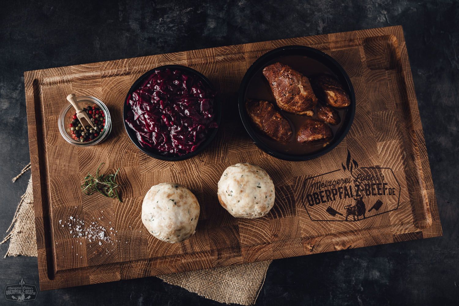 Durch das Sous-Vide-Garen bleiben die Schweinebacken angenehm mürbe, verlieren keine Flüssigkeit und entfalten ein besonders rundes Aroma. In Kombination mit Rotkohl, Klößen und Schweinebratensoße ergibt sich ein stimmiges Gericht, das an ein klassisches Sonntagsmenü erinnert – nur deutlich schneller serviert.