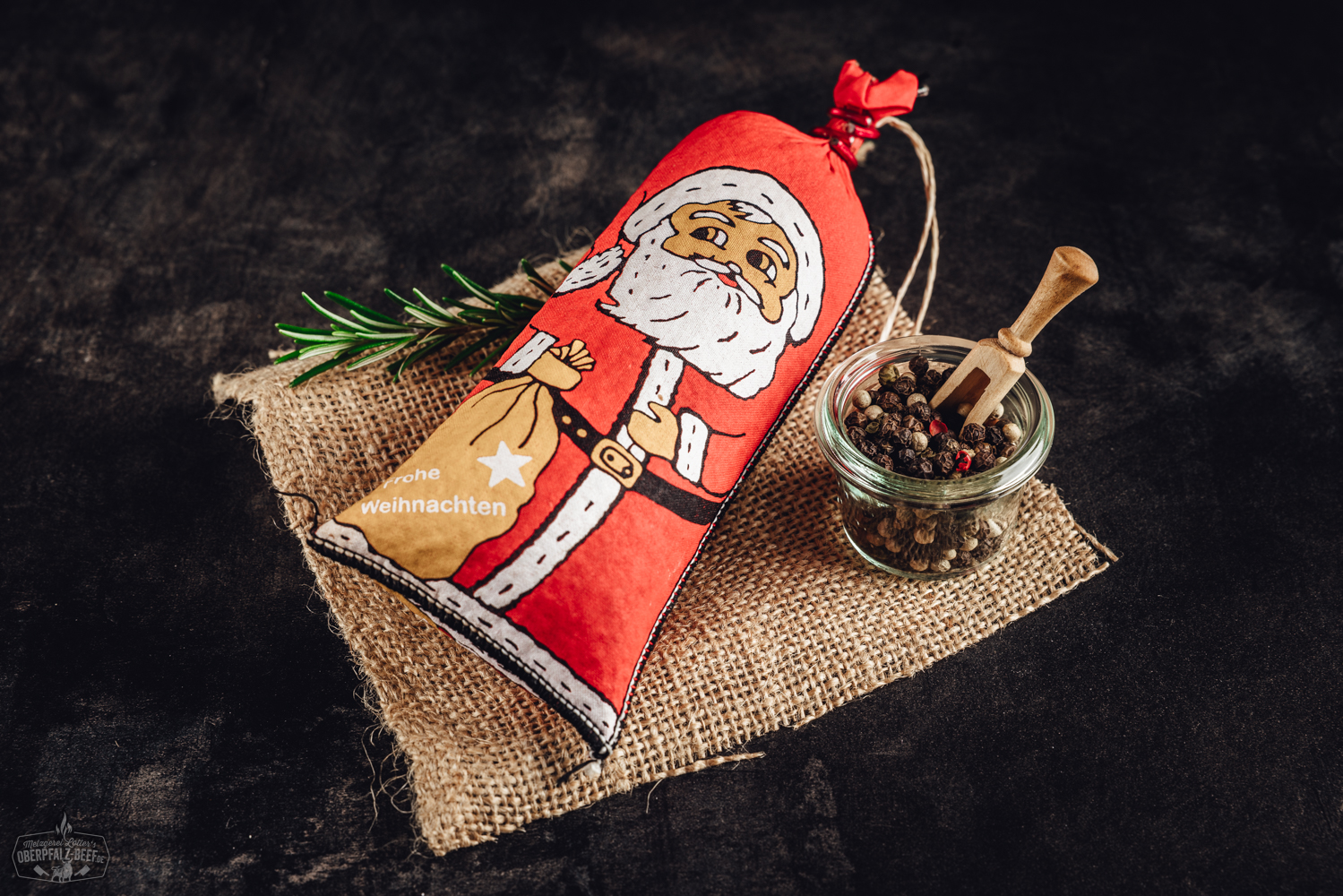 Gefertigt aus einer aromatischen Mischung aus Rind- und Schweinefleisch sowie ausgewählten Gewürzen überzeugt der Weihnachtsmann nicht nur optisch. Knoblauch, Pfeffer, natürliche Starterkulturen und eine sorgfältige Reifung sorgen für ein kräftiges, vollmundiges Aroma. Eine herzhafte Spezialität, die nicht nur zur Weihnachtszeit begeistert.